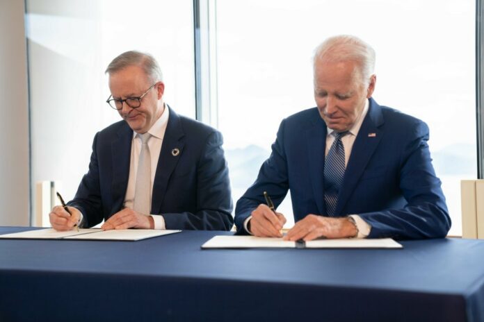Biden hailed the settlement as a “large step ahead” within the combat towards the local weather disaster, saying local weather and clear power had grow to be the “third pillar” of the Australia-US alliance, together with protection and financial cooperation.