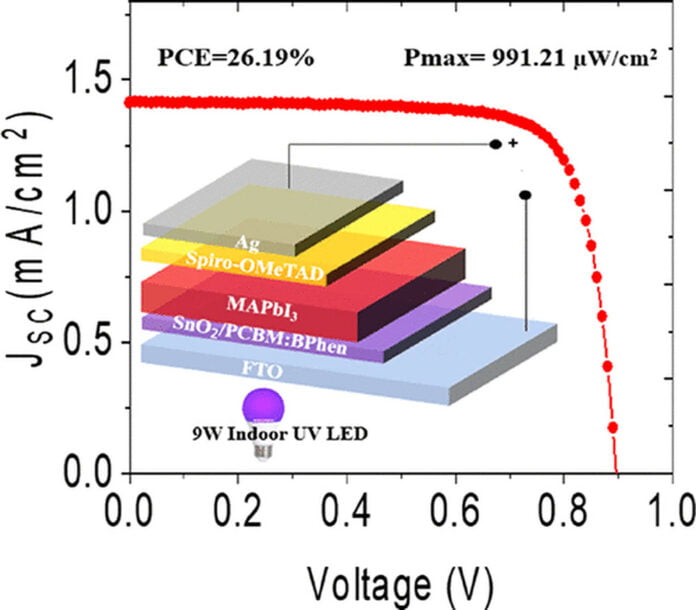 The champion photo voltaic cell constructed by the analysis group achieved an influence conversion effectivity of 20.63%, open-circuit voltage of 1.02 V, short-circuit present of 1.06 mA/cm.2and a fill issue of 78.89%, leading to a most energy output of 775.86 μW/cm2. “The units UV pretreated for six hours retained 97.18% of their most effectivity whereas the 14 hours pretreated units retained 92.38%,” added the teachers. “Nonetheless, additional rising the UV pretreatment time as much as 24 hours results in a big lower in PCE and the units retain 84.1% of their most effectivity.”