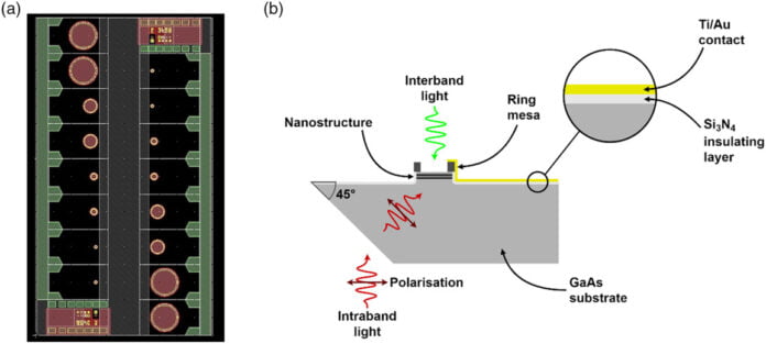 They made the cell with an undoped GaAs substrate utilizing molecular beam epitaxy and a buffer layer manufactured from the identical materials. In addition they used 200-nanometer-thick gold rings on 20-nanometer-thick titanium surrounds for the entrance aspect of {the electrical} contact and metalized the entrance of the system with layers of gold and zinc.