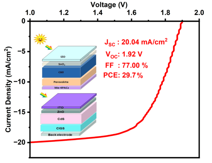 “Within the prime cell, the perovskite layer acts as an absorber to soak up high-energy photons. Equally, the underside cell makes use of the CIGS layer to soak up low-energy photons,” stated the scientists, which signifies that the 2 cells are related by way of an intermediate layer of ITO to offer present matching in tandem configuration.