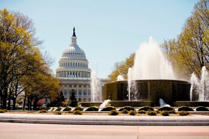 The US Capitol constructing and fountain in Washington, DC. Glowimages / Getty Photos