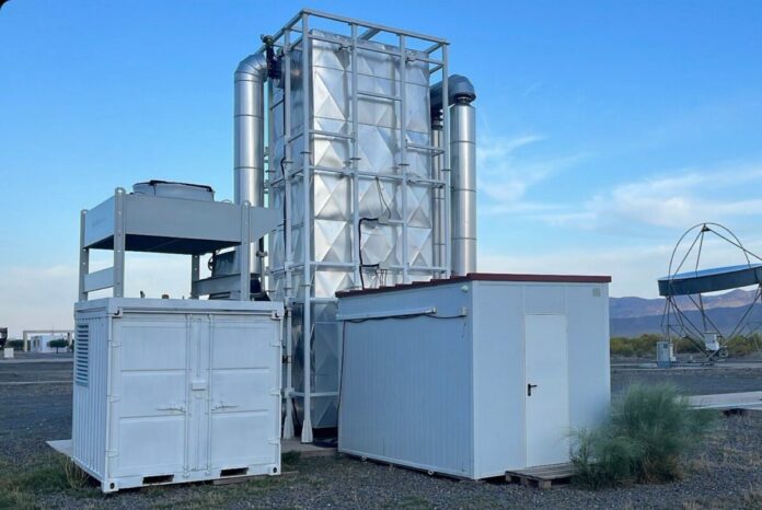 The corporate’s check mission is a 3 MWh TES system deployed on the CIEMAT institute in Spain. It’s accompanied by a small Natural Rankine Cycle containerized turbine, and has a footprint of 2m X 2m, and it’s 7 meters tall.