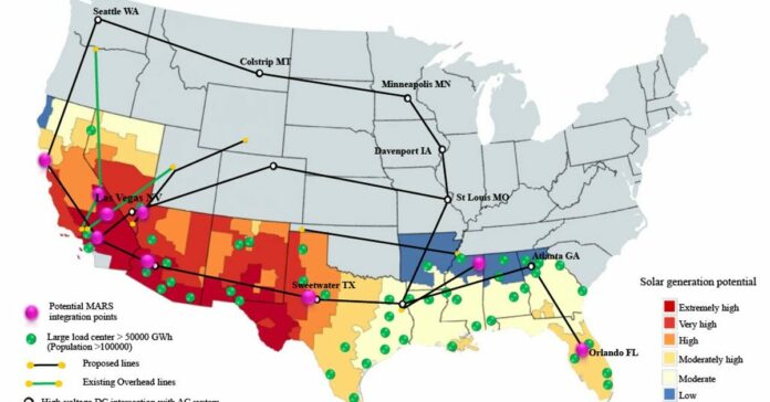 Photograph: Potential high-voltage direct present strains in states with best photo voltaic potential, and future websites for MARS/Oak Ridge Nationwide Laboratories